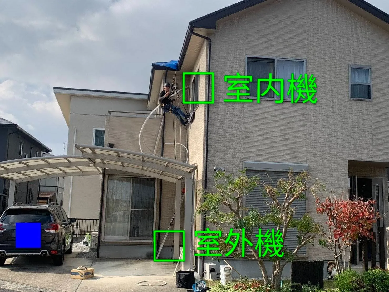 2 ガレージ屋根があっても高所作業のエアコン工事可能です!