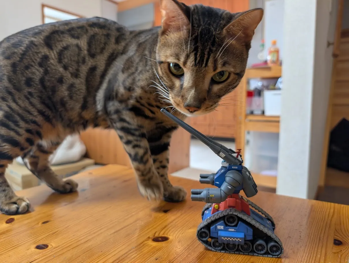 猫ちゃんは、うちのベンガル猫と、元旦ネタのガンタンクです(笑)