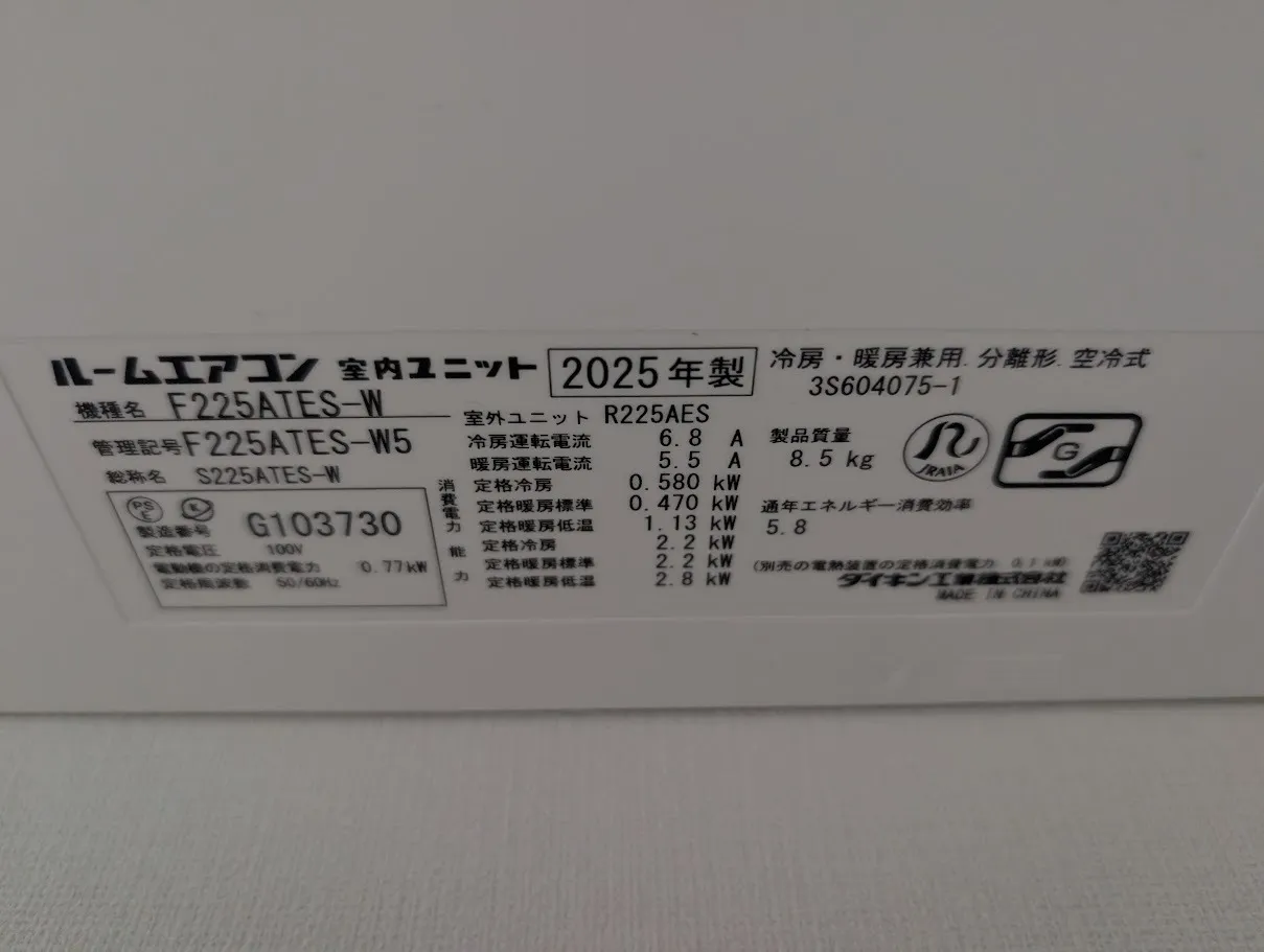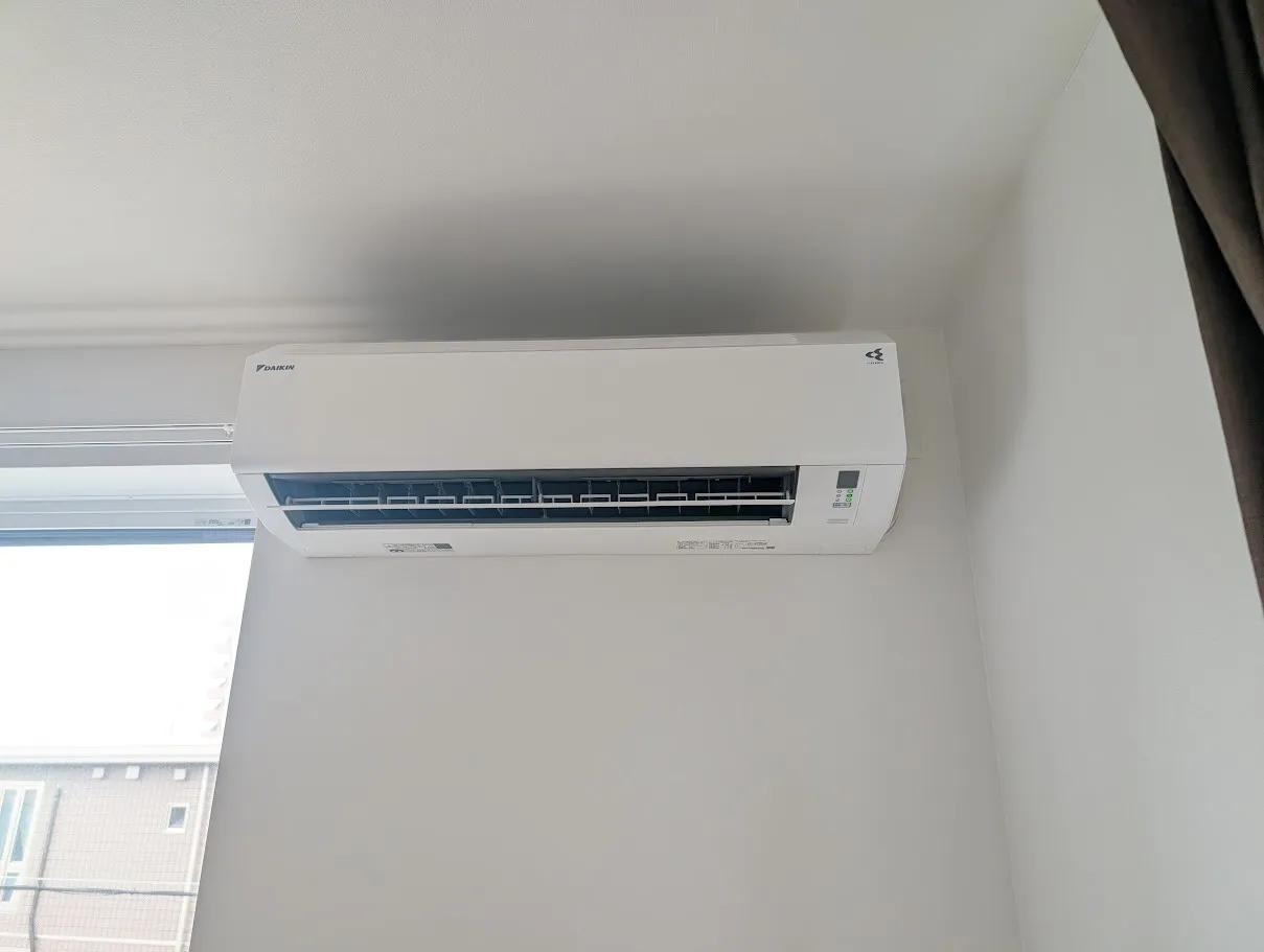 室内機の取り付け位置の直ぐ右側にコンセントがあります(画像1枚目)