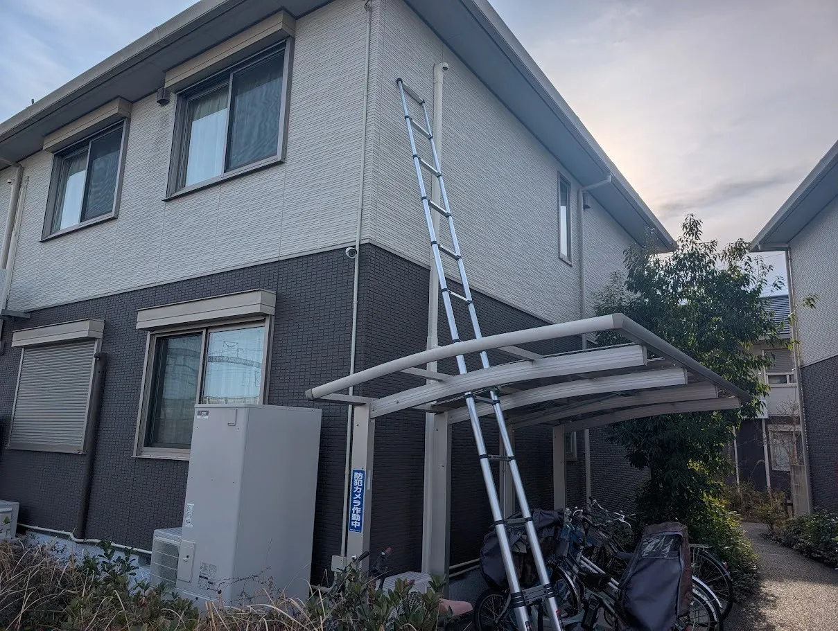 一段づつ伸縮出来る便利なハシゴで作業をしております(画像1枚目)