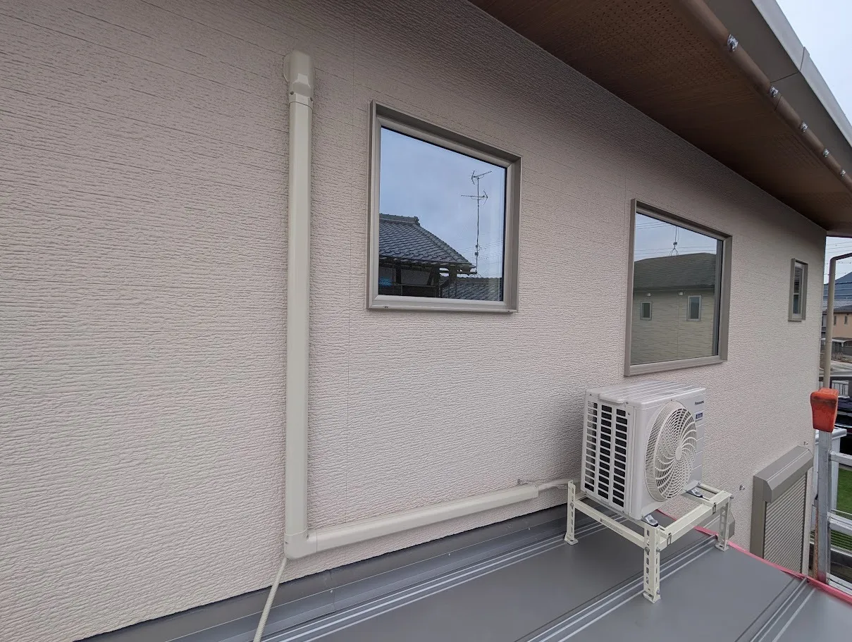 室外機はガルバリウムの下屋への設置になります