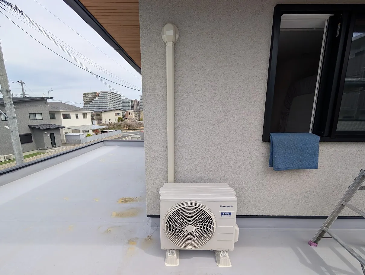草津市エアコン引越し|新築で配管再利用・室外機は平屋根設置(ダイワハウス)