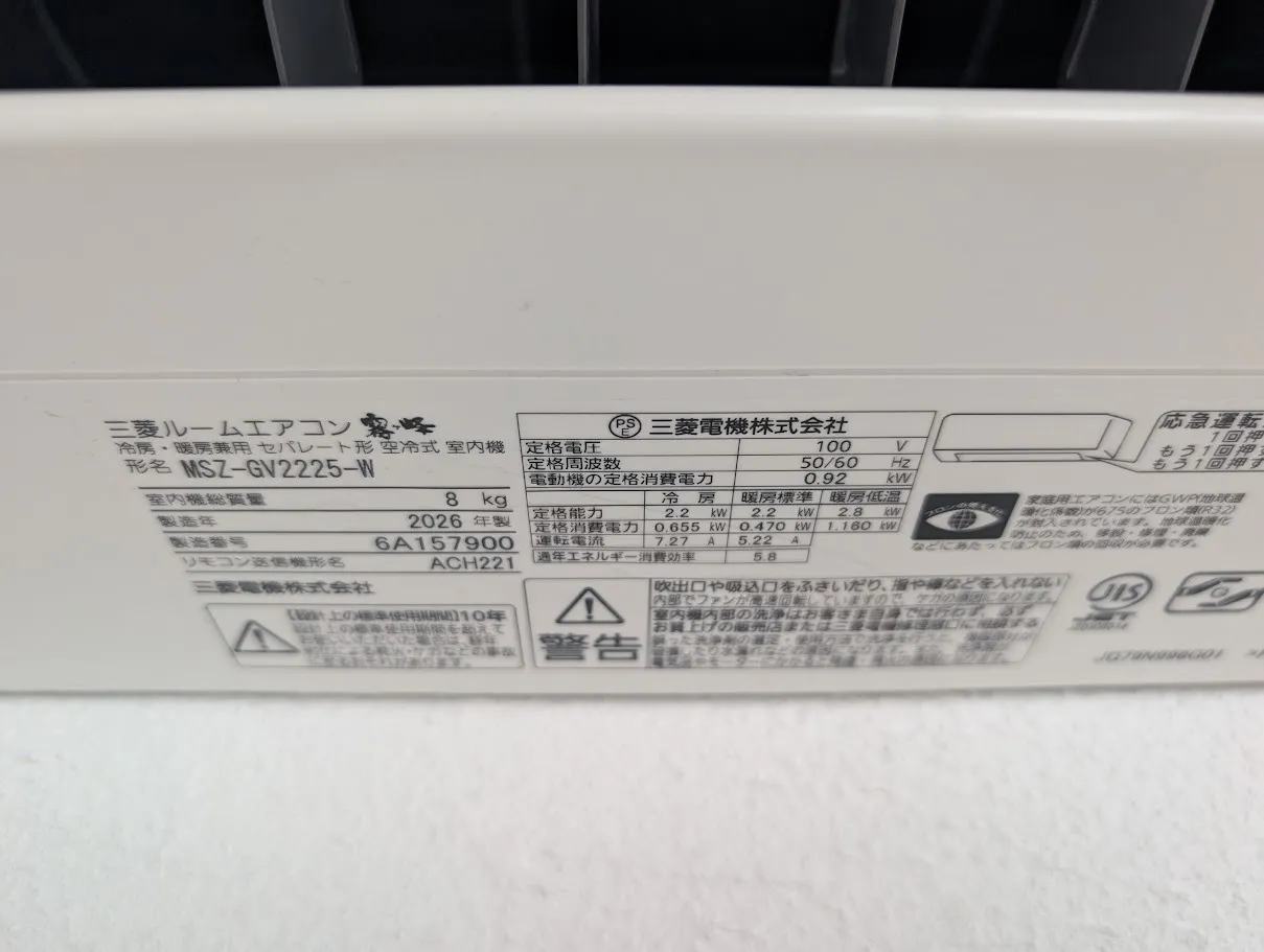 大津市エアコン取り付け|幅530mmの狭小×高所作業!ロープアクセスで2階→1階工事(三菱MSZ-GV2225-W)