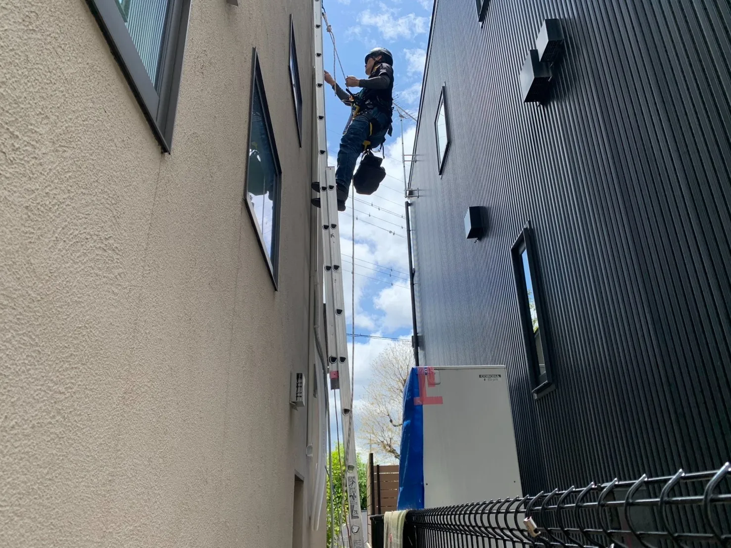 当店では建物と塀の間が狭いケースや、高所でハシゴ作業が難しい現場にも柔軟に対応可能です!